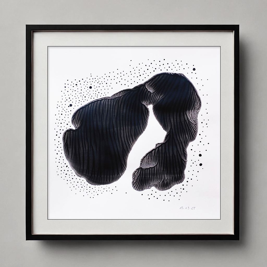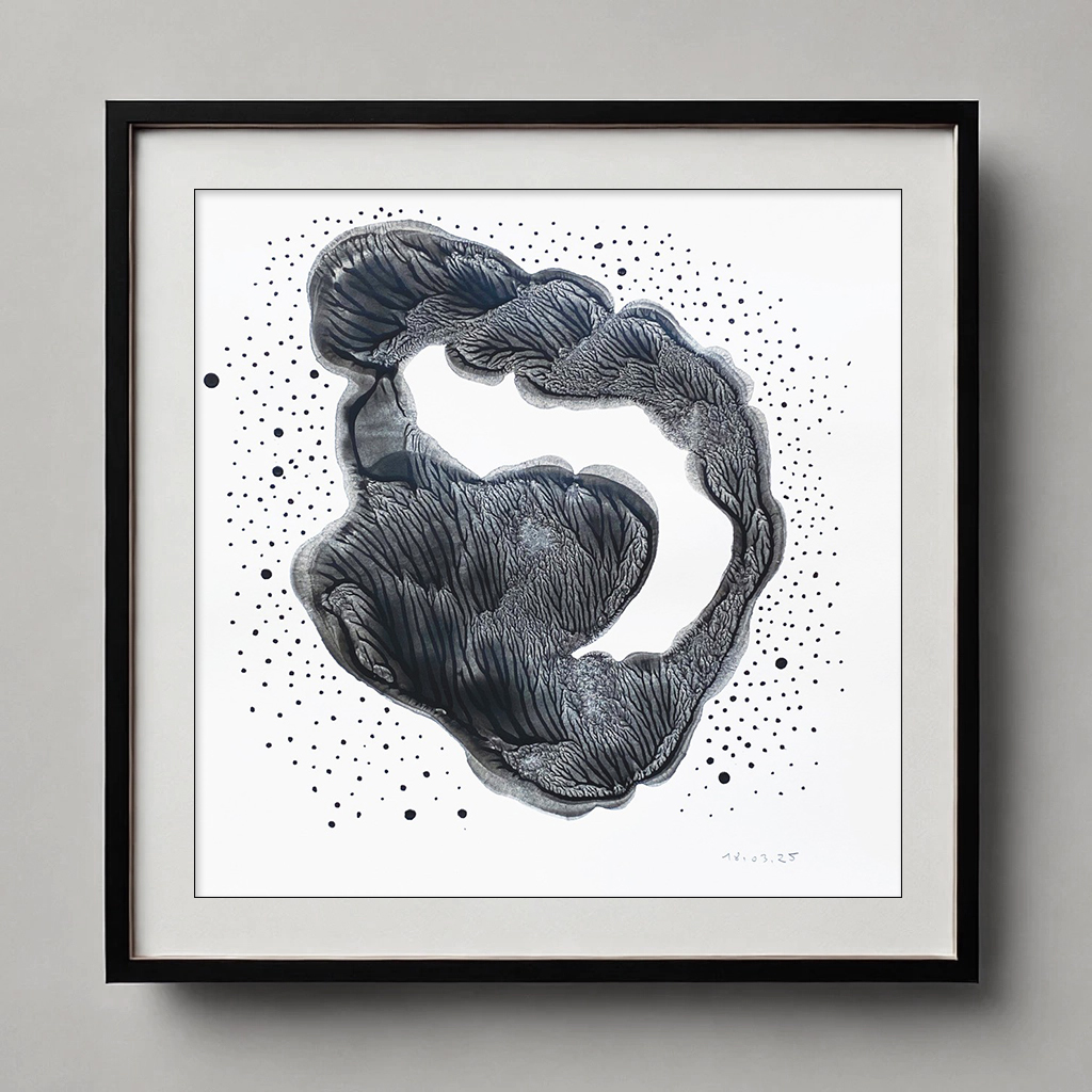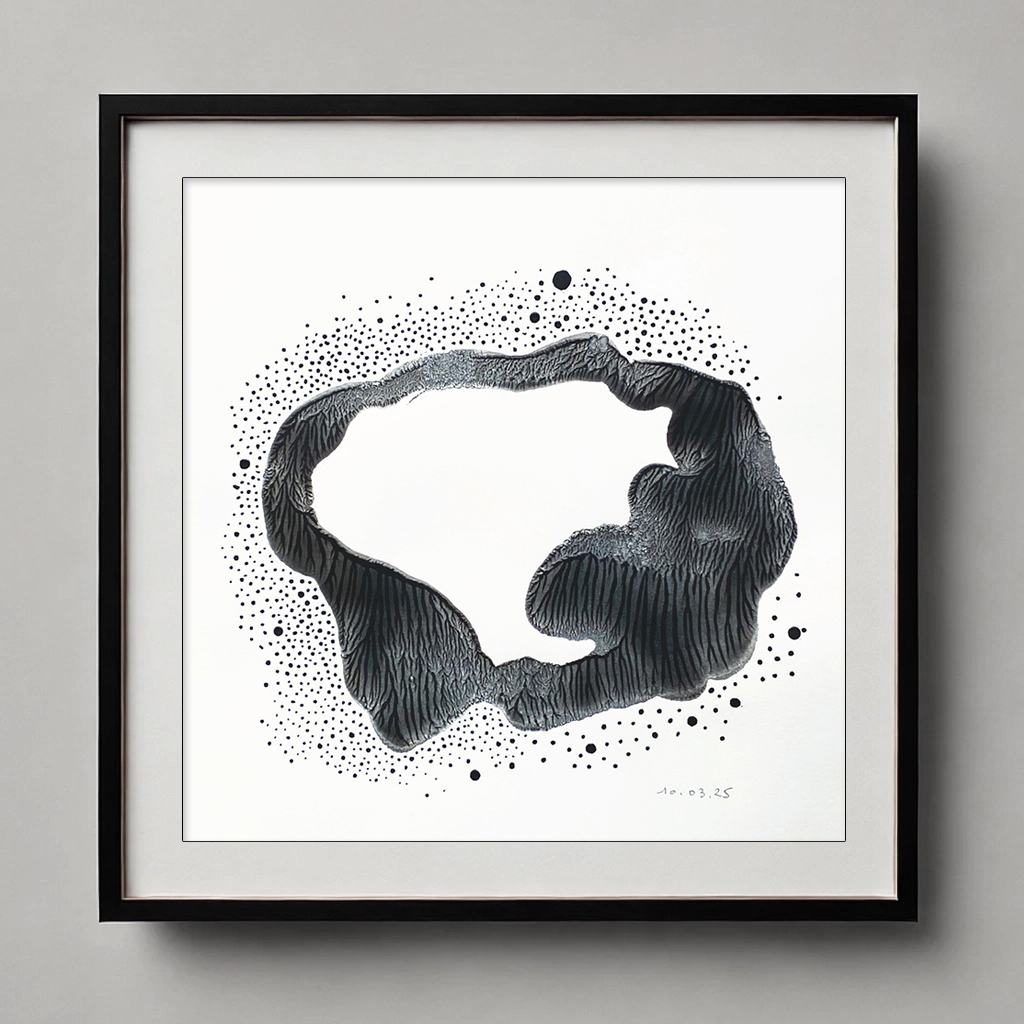 Avec Entre les gouttes, Gérard Delafosse construit la lumière par accumulation et retrait. Sa peinture opaque remplace le verre, mais conserve la précision et la vibration interne.