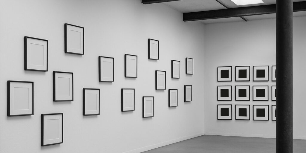 ■ 30.5 ■ impose une tension spatiale maîtrisée. Le format régulier scande les murs. Les œuvres s’alignent, se resserrent ou s’espacent pour créer des blocs de rythme et des vides suspendus.